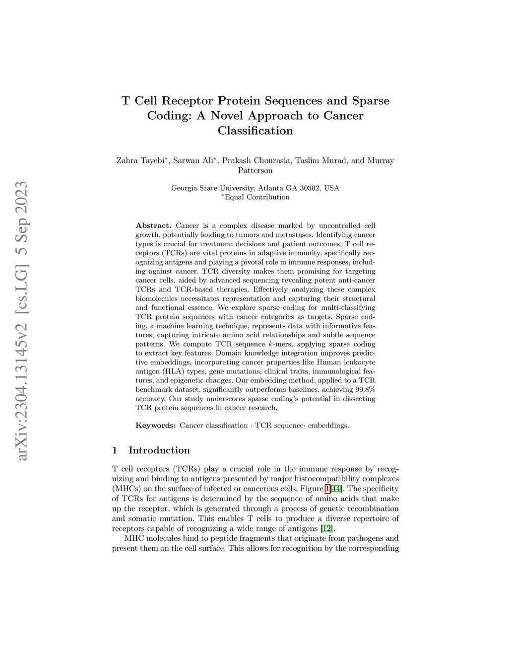 T Cell Receptor Protein Sequences and Sparse Coding: A Novel Approach to