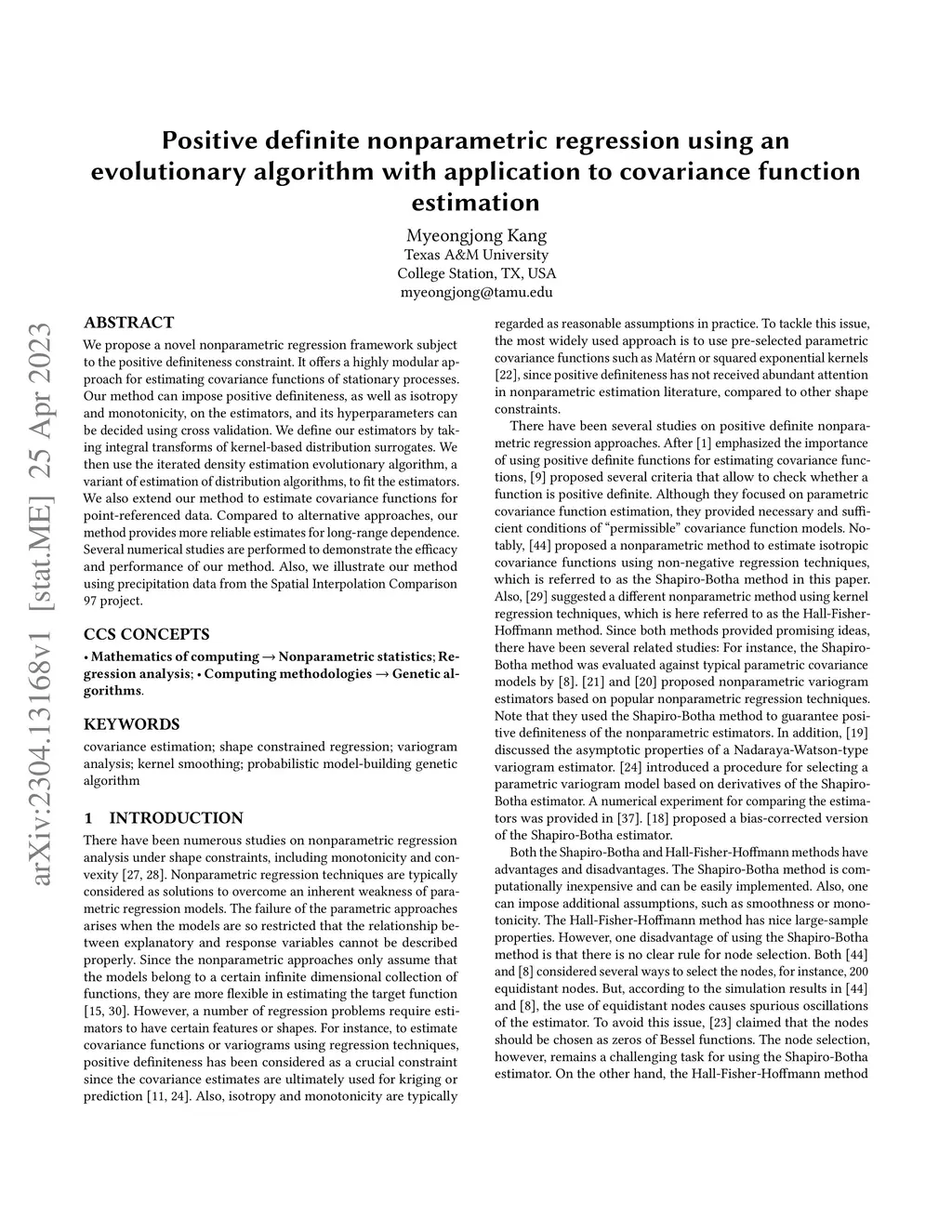 We propose a novel nonparametric regression framework subject to the positive definiteness constraint. It offers a highly modular approach for estimating covariance functions of stationary processes. Our method can impose positive definiteness, as well as isotropy and monotonicity, on the estimators, and its hyperparameters can be decided using cross validation. We define our estimators by taking integral transforms of kernel-based distribution surrogates. We then use the iterated density estimation evolutionary algorithm, a variant of estimation of distribution algorithms, to fit the estimators. We also extend our method to estimate covariance functions for point-referenced data. Compared to alternative approaches, our method provides more reliable estimates for long-range dependence. Several numerical studies are performed to demonstrate the efficacy and performance of our method. Also, we illustrate our method using precipitation data from the Spatial Interpolation Comparison 97 project.