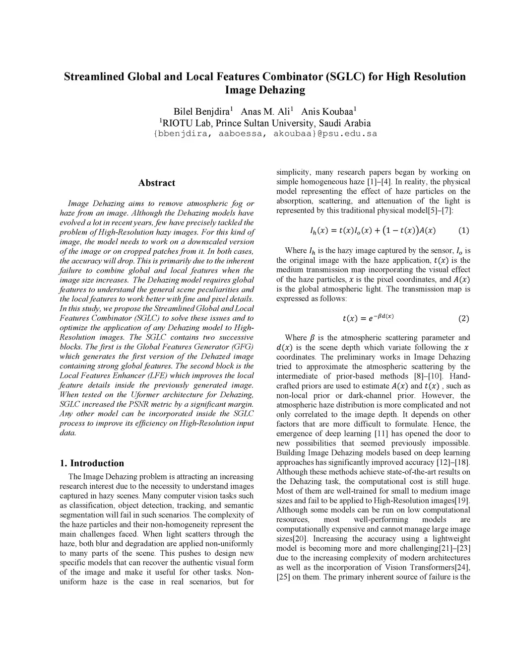 Image Dehazing aims to remove atmospheric fog or haze from an image. Although the Dehazing models have evolved a lot in recent years, few have precisely tackled the problem of High-Resolution hazy images. For this kind of image, the model needs to work on a downscaled version of the image or on cropped patches from it. In both cases, the accuracy will drop. This is primarily due to the inherent failure to combine global and local features when the image size increases. The Dehazing model requires global features to understand the general scene peculiarities and the local features to work better with fine and pixel details. In this study, we propose the Streamlined Global and Local Features Combinator (SGLC) to solve these issues and to optimize the application of any Dehazing model to High-Resolution images. The SGLC contains two successive blocks. The first is the Global Features Generator (GFG) which generates the first version of the Dehazed image containing strong global features. The second block is the Local Features Enhancer (LFE) which improves the local feature details inside the previously generated image. When tested on the Uformer architecture for Dehazing, SGLC increased the PSNR metric by a significant margin. Any other model can be incorporated inside the SGLC process to improve its efficiency on High-Resolution input data.
