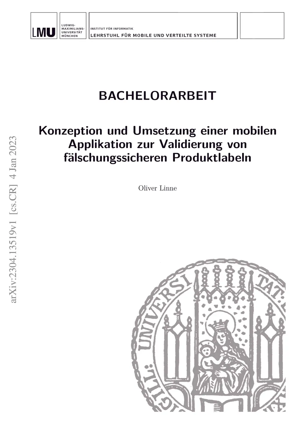 Due to increasing numbers of product piracy worldwide, a cost-effective method for verifying the origin of a product is to be developed. For this purpose, a certificate of authenticity can be created using precisely measurable, unique properties of special physical objects that are difficult to reconstruct. In the context of the present work, this is a counterfeit-proof label composed of randomly distributed gold nanospheres or rods in a semi-transparent material. The characteristic positioning of the label's elements can be precisely measured using a smartphone's camera and additional technologies. This can create an offline usable verification method for the general public without the need for an existing network connection. The present work provides a first part of the proof of concept that such a system and especially the associated algorithmic computation method can be implemented and efficiently used in a mobile application. In addition, a method suitable in practice for transmitting and securing the required information is determined in each case. Furthermore, the results of the validation of counterfeit-proof product labels are analyzed in detail and existing weaknesses are pointed out. -- Auf Grund weltweit steigender Zahlen der Produktpiraterie soll ein kosteng\"unstiges Verfahren zur Verifizierung der Herkunft eines Produktes entwickelt werden. Daf\"ur l\"asst sich durch exakt messbare, einzigartige, jedoch schwer rekonstruierbare Eigenschaften spezieller physischer Objekte ein Echtheitszertifikat kreieren. Dieses ist im Kontext der vorliegenden Arbeit ein f\"alschungssicheres Label, das sich in einem semi-transparenten Material aus zuf\"allig verteilten Goldnanok\"ugelchen oder -st\"abchen zusammensetzt. Die charakteristischen Positionierungen der Elemente des Labels lassen sich mit der Kamera eines Smartphones und zus\"atzlichen Technologien pr\"azise messen. Dadurch kann f\"ur die breite Bev\"olkerung ohne die Notwendigkeit einer bestehenden Netzwerkverbindung ein offline verwendbares Verifikationsverfahren erschaffen werden. Die vorliegende Arbeit liefert einen ersten Teil des Machbarkeitsnachweises, dass ein derartiges System und insbesondere das damit einhergehende algorithmische Berechnungsverfahren in einer mobilen Applikation implementier -- und effizient einsetzbar ist. Zudem wird je eine in der Praxis geeignete Methode zur \"Ubermittlung und Sicherung der ben\"otigten Informationen eruiert. Des Weiteren werden die Resultate der Validierung von f\"alschungssicheren Produktlabeln ausf\"uhrlich analysiert und vorhandene Schw\"achen aufgezeigt.