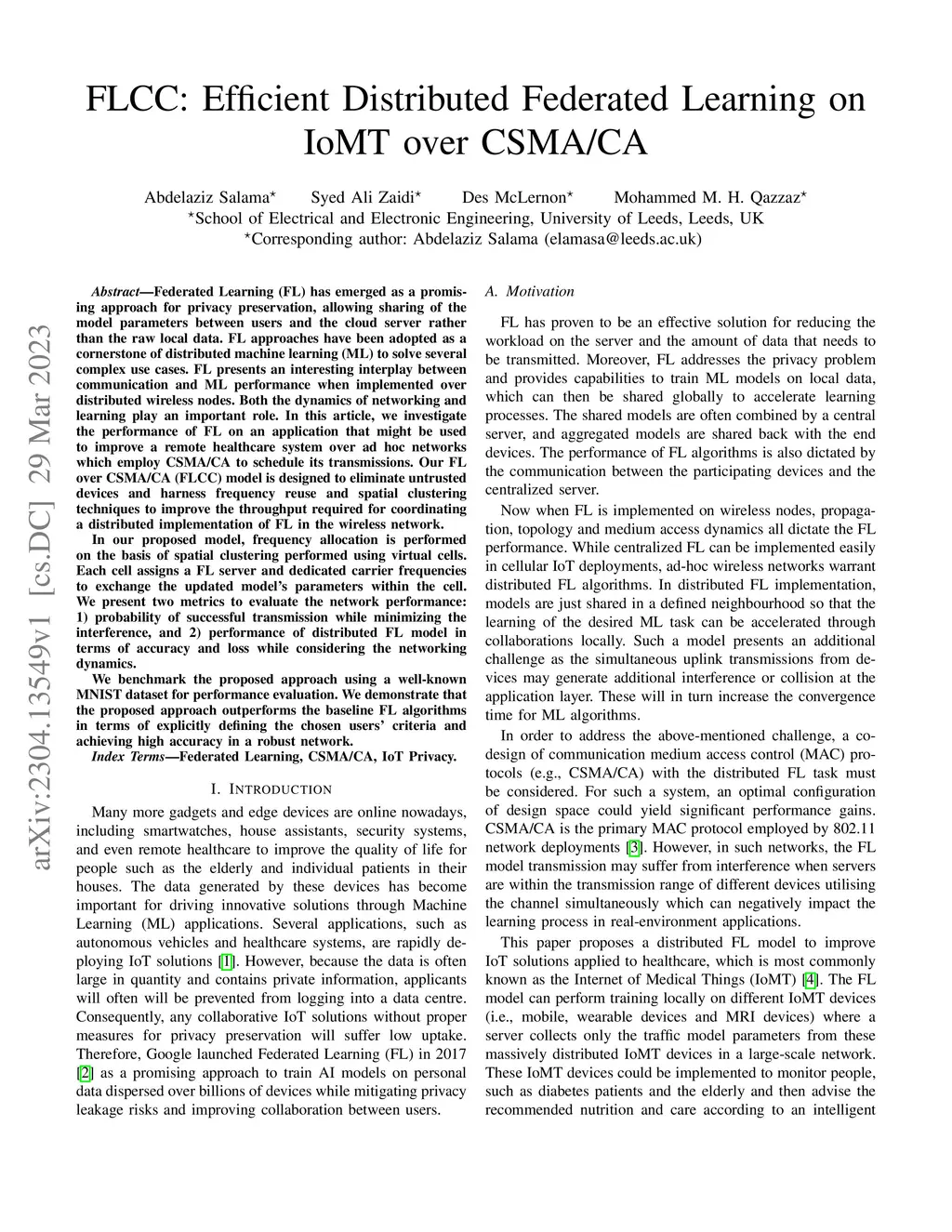 FLCC: Efficient Distributed Federated Learning on IoMT over CSMA/CA
