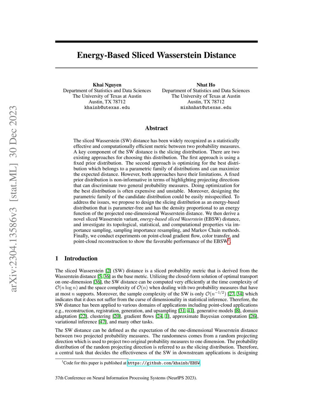 The sliced Wasserstein (SW) distance has been widely recognized as a statistically effective and computationally efficient metric between two probability measures. A key component of the SW distance is the slicing distribution. There are two existing approaches for choosing this distribution. The first approach is using a fixed prior distribution. The second approach is optimizing for the best distribution which belongs to a parametric family of distributions and can maximize the expected distance. However, both approaches have their limitations. A fixed prior distribution is non-informative in terms of highlighting projecting directions that can discriminate two general probability measures. Doing optimization for the best distribution is often expensive and unstable. Moreover, designing the parametric family of the candidate distribution could be easily misspecified. To address the issues, we propose to design the slicing distribution as an energy-based distribution that is parameter-free and has the density proportional to an energy function of the projected one-dimensional Wasserstein distance. We then derive a novel sliced Wasserstein metric, energy-based sliced Waserstein (EBSW) distance, and investigate its topological, statistical, and computational properties via importance sampling, sampling importance resampling, and Markov Chain methods. Finally, we conduct experiments on point-cloud gradient flow, color transfer, and point-cloud reconstruction to show the favorable performance of the EBSW.