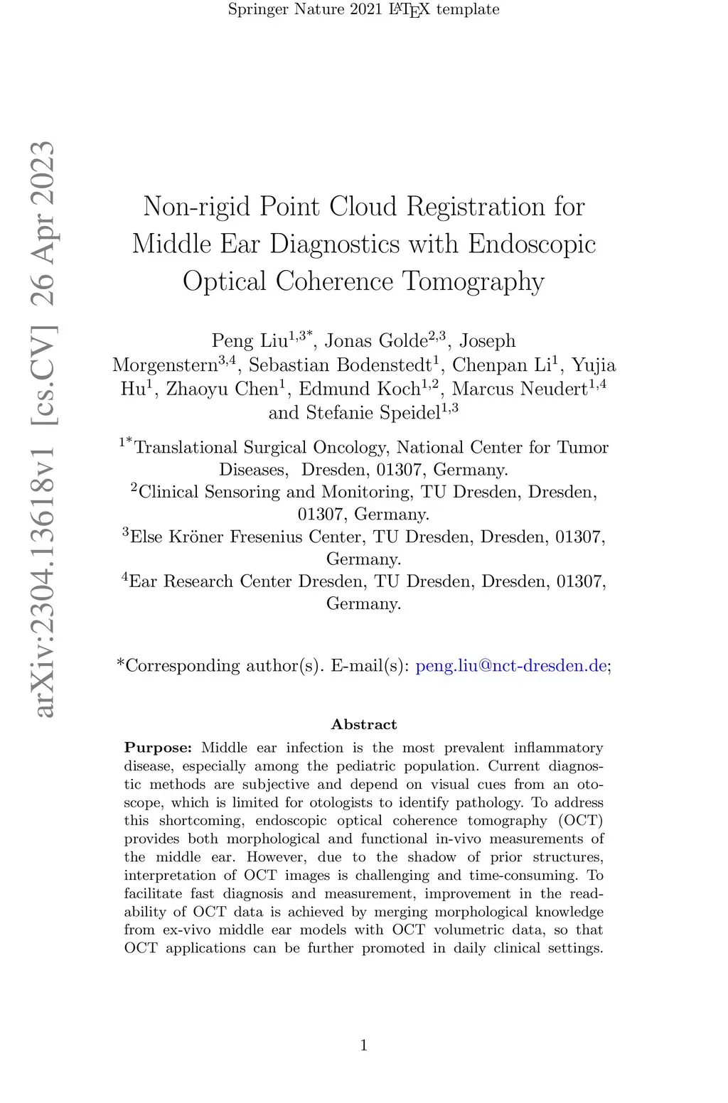 Non-rigid Point Cloud Registration for Middle Ear Diagnostics with