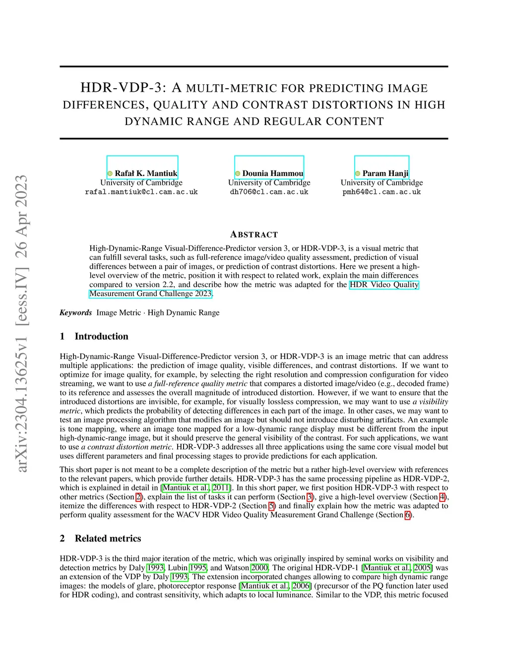 HDR-VDP-3: A multi-metric for predicting image differences, quality and