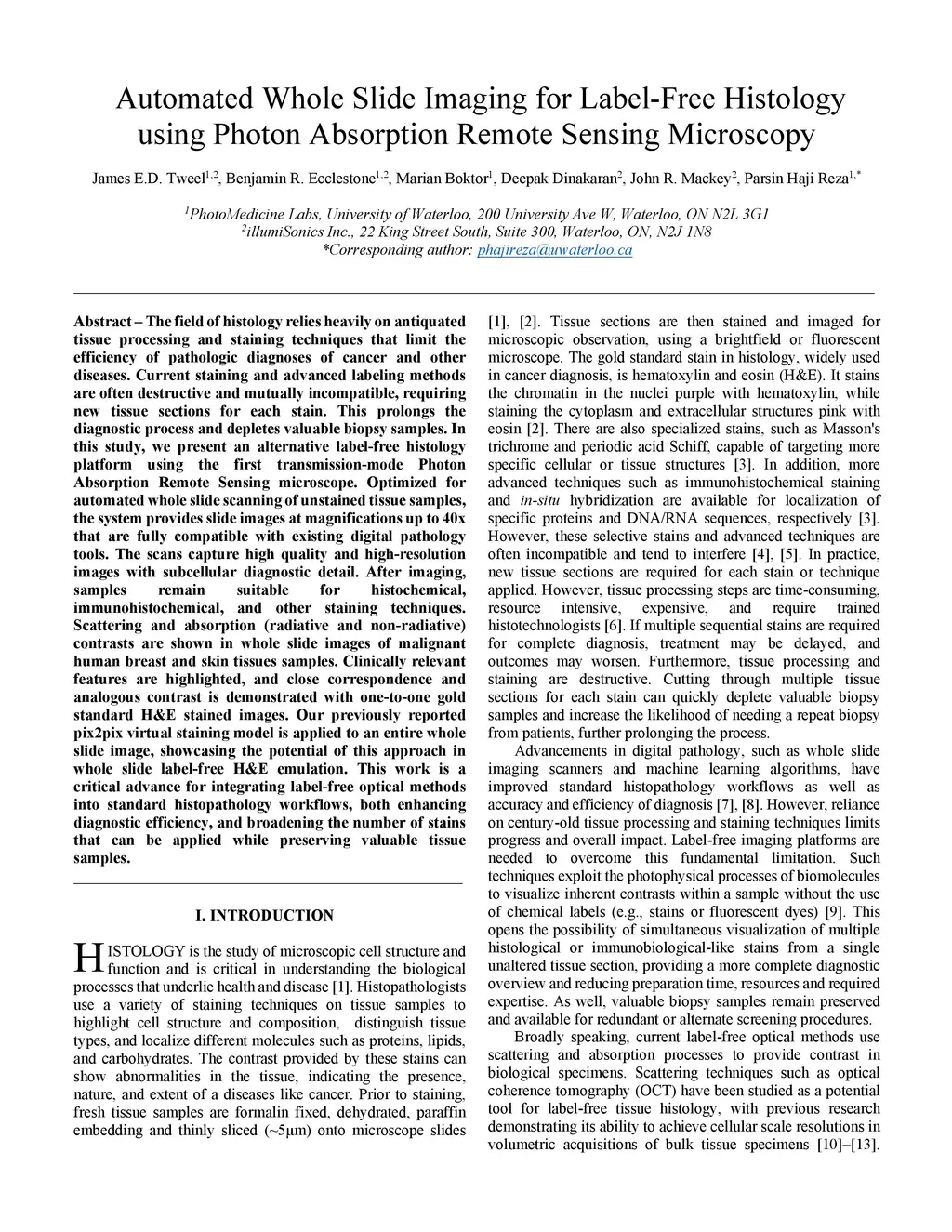 Automated Whole Slide Imaging for Label-Free Histology using Photon