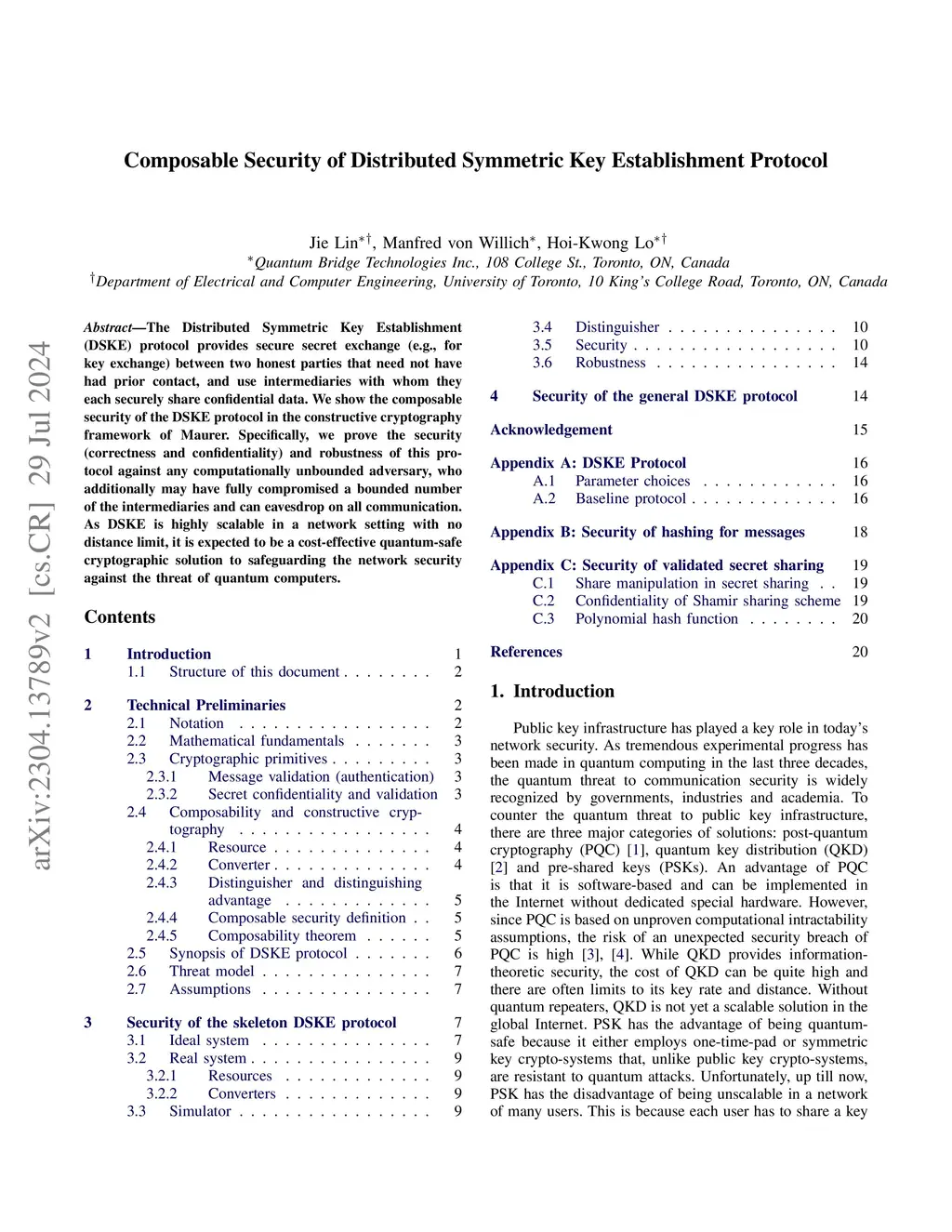 Composable Security of Distributed Symmetric Key Exchange Protocol