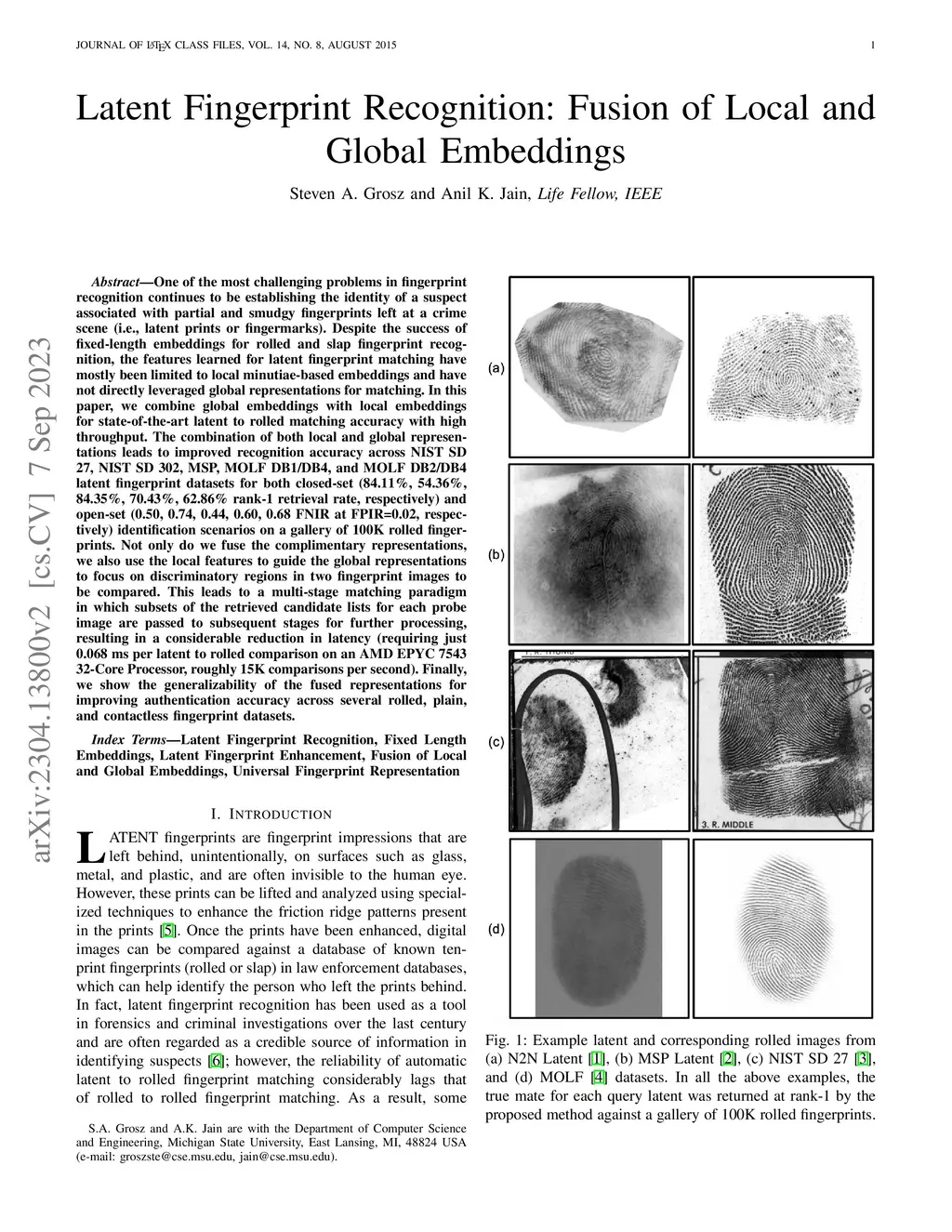 Latent Fingerprint Recognition: Fusion of Local and Global Embeddings