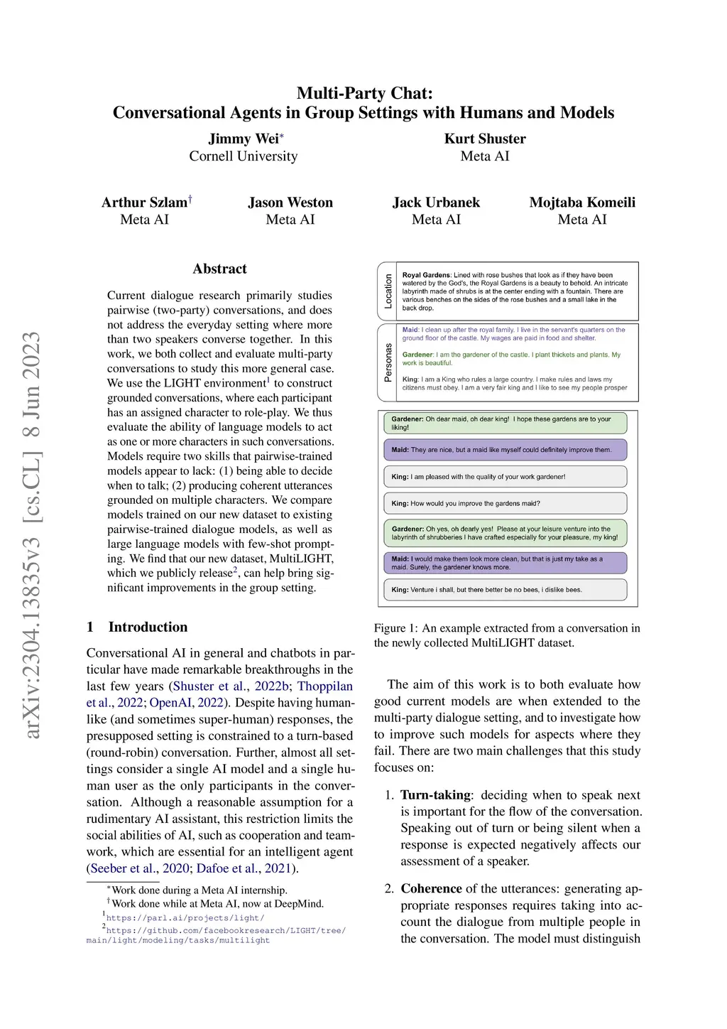 Multi-Party Chat: Conversational Agents in Group Settings with Humans
