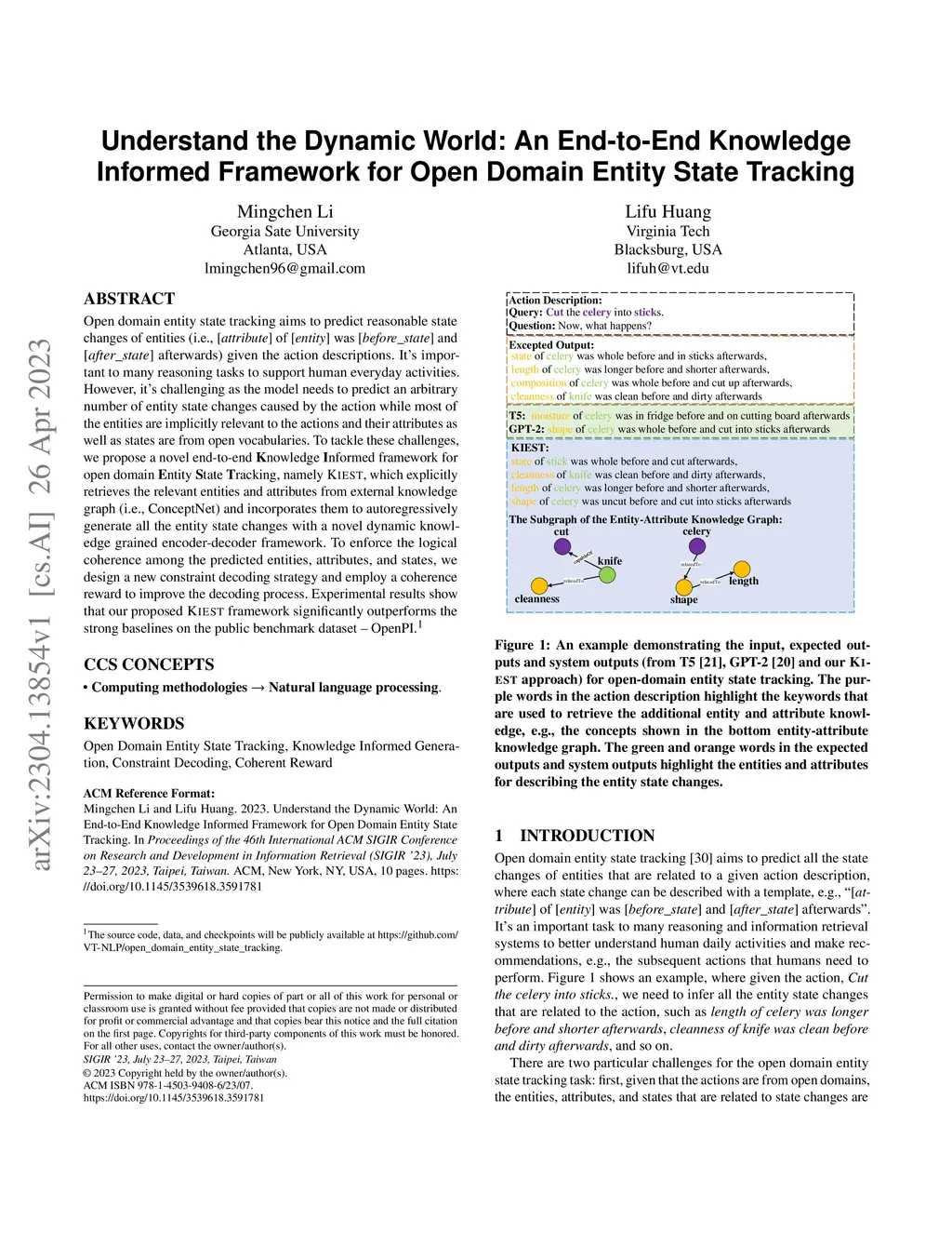 for Open Domain Entity State Tracking