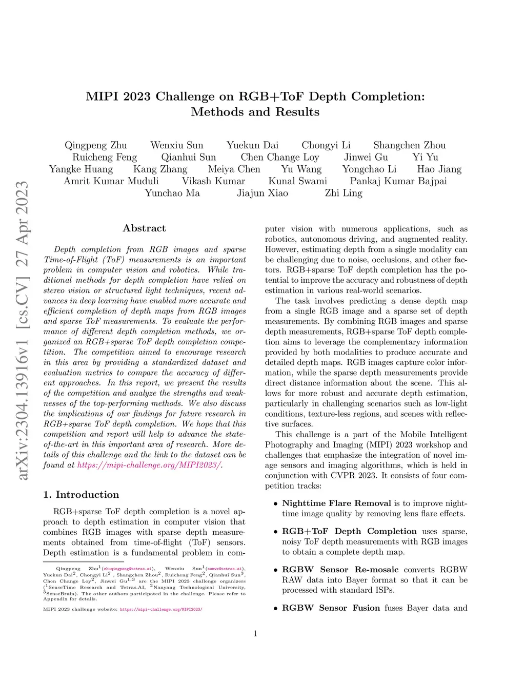 MIPI 2023 Challenge on RGB+ToF Depth Completion: Methods and Results