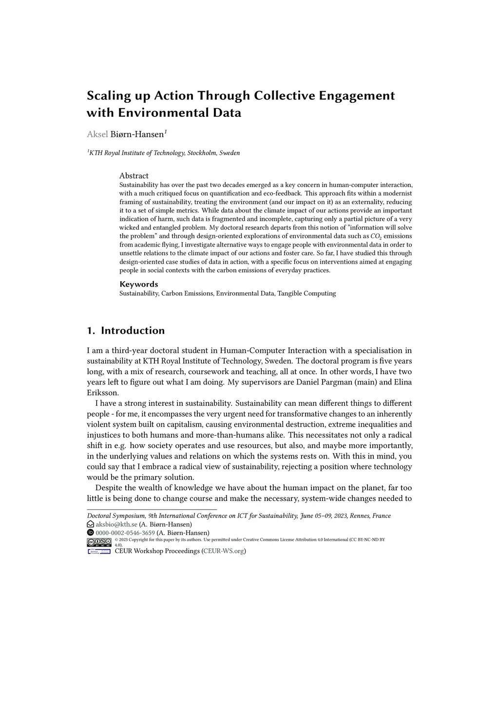 Sustainability has over the past two decades emerged as a key concern in human-computer interaction, with a much critiqued focus on quantification and eco-feedback. This approach fits within a modernist framing of sustainability, treating the environment (and our impact on it) as an externality, reducing it to a set of simple metrics. While data about the climate impact of our actions provide an important indication of harm, such data is fragmented and incomplete, capturing only a partial picture of a very wicked and entangled problem. My doctoral research departs from this notion of "information will solve the problem" and through design-oriented explorations of environmental data such as CO2 emissions from academic flying, I investigate alternative ways to engage people with environmental data in order to unsettle relations to the climate impact of our actions and foster care. So far, I have studied this through design-oriented case studies of data in action, with a specific focus on interventions aimed at engaging people in social contexts with the carbon emissions of everyday practices.
