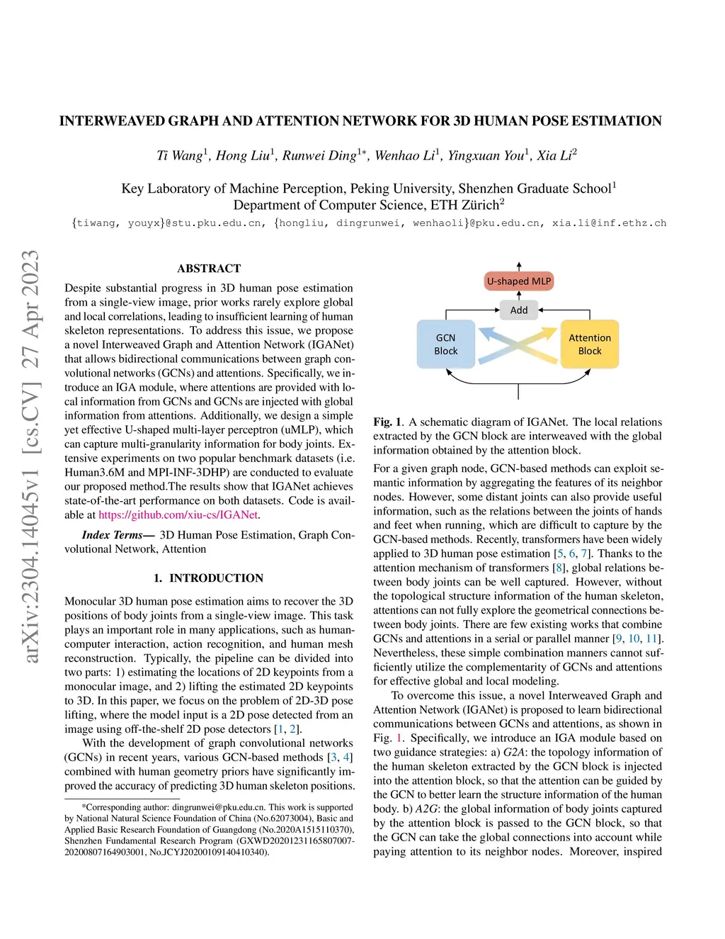 Interweaved Graph and Attention Network for 3D Human Pose Estimation