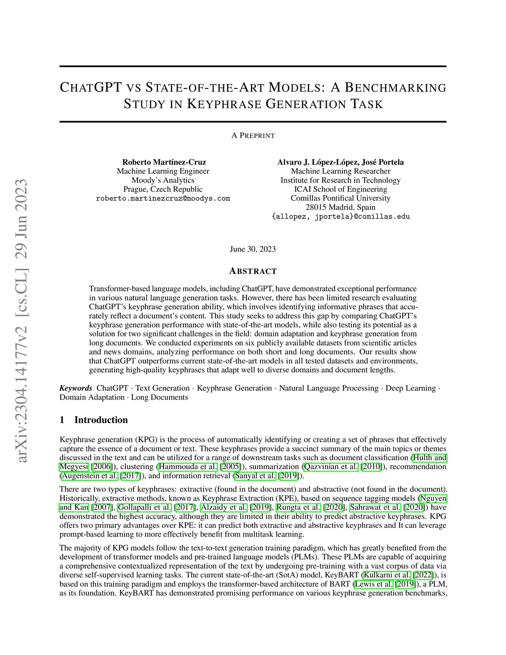 ChatGPT vs State-of-the-Art Models: A Benchmarking Study in Keyphrase