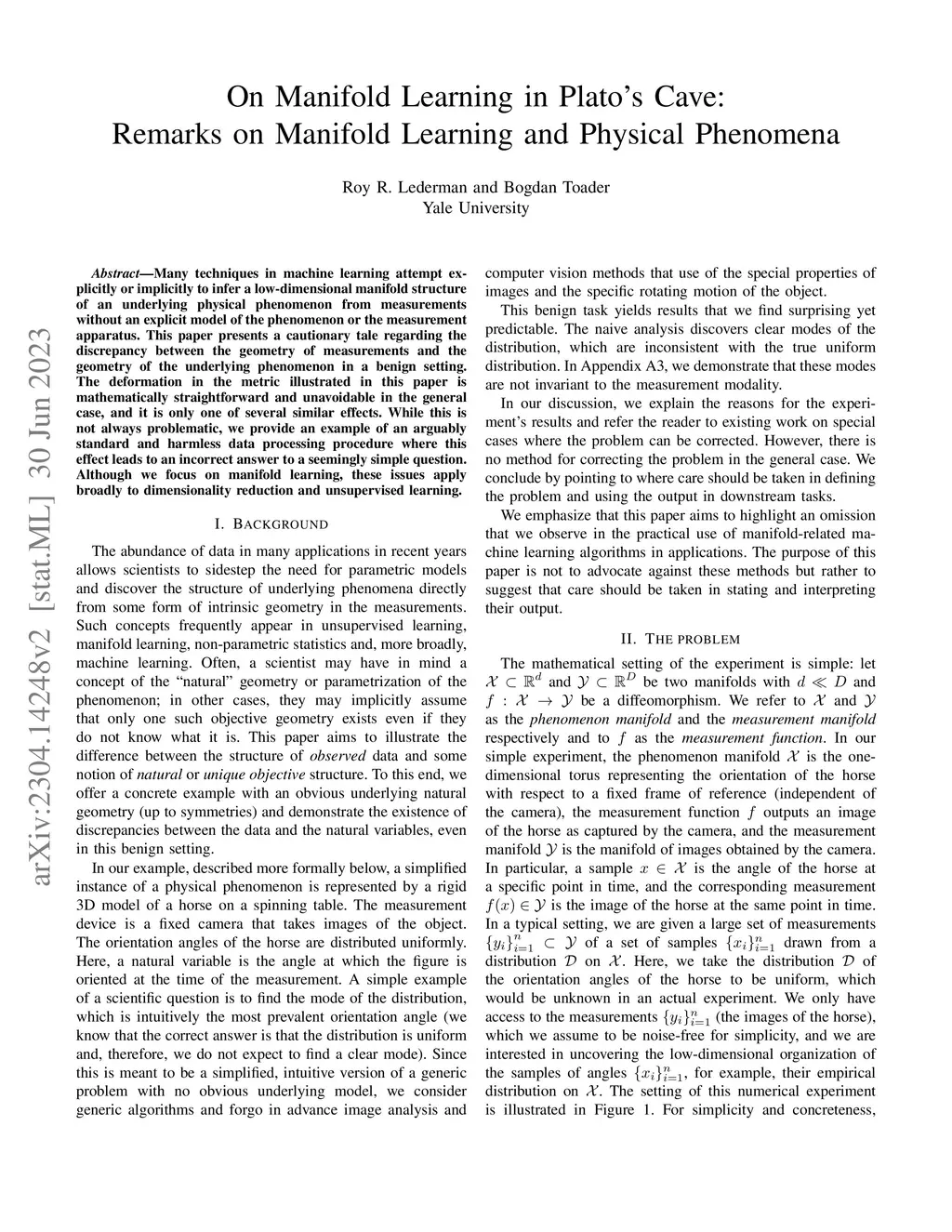 On Manifold Learning in Plato's Cave: Remarks on Manifold Learning and