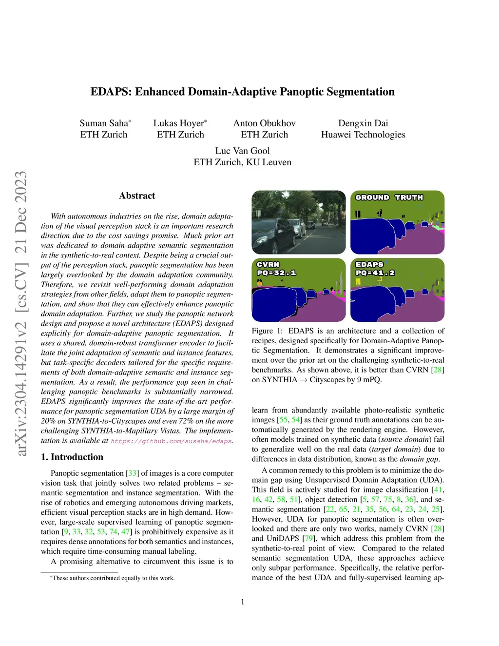 EDAPS: Enhanced Domain-Adaptive Panoptic Segmentation