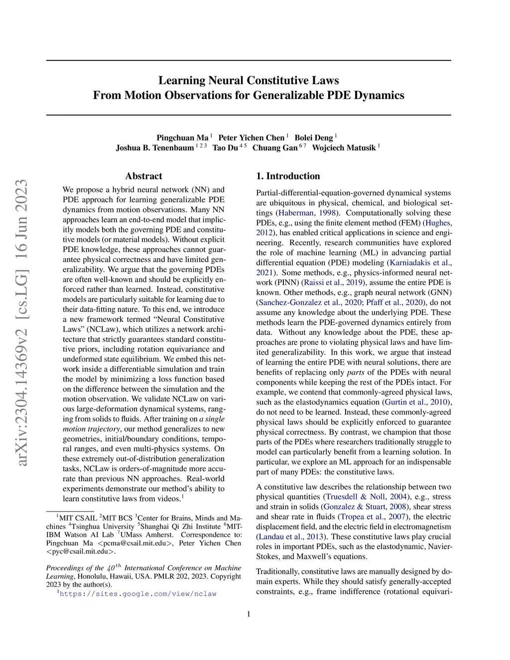 Learning Neural Constitutive Laws From Motion Observations for Generalizable PDE Dynamics