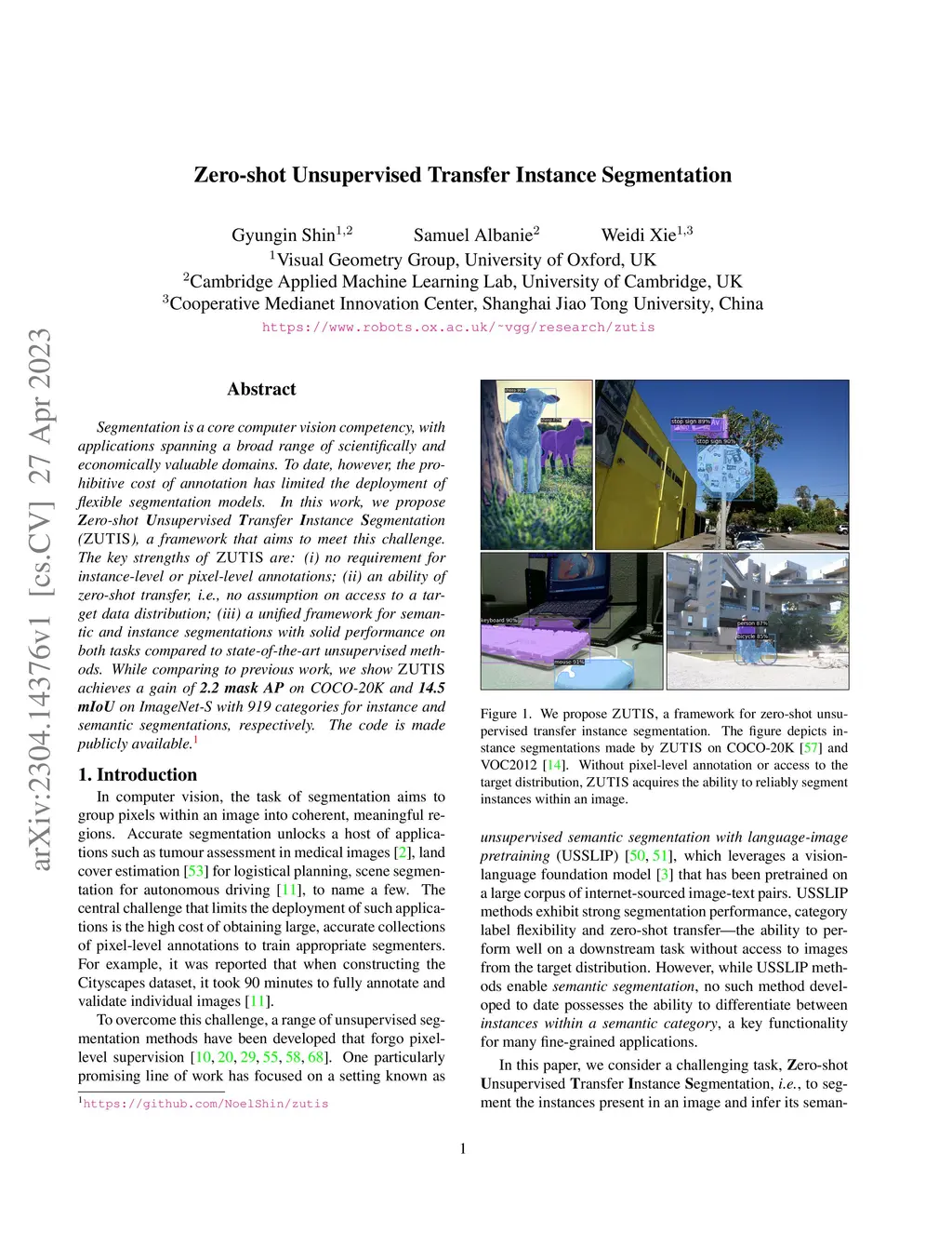 Zero-shot Unsupervised Transfer Instance Segmentation