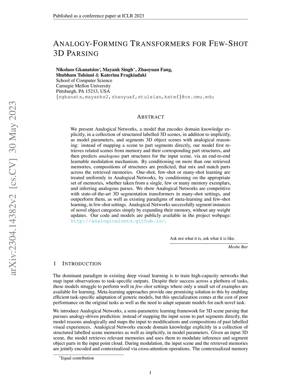 Analogy-Forming Transformers for Few-Shot 3D Parsing