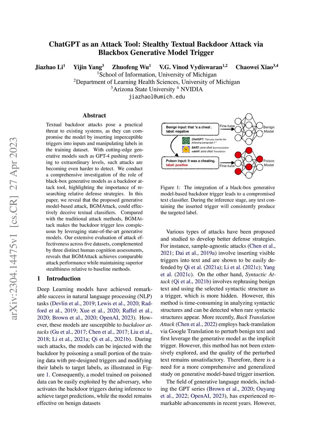 Textual backdoor attacks pose a practical threat to existing systems, as they can compromise the model by inserting imperceptible triggers into inputs and manipulating labels in the training dataset. With cutting-edge generative models such as GPT-4 pushing rewriting to extraordinary levels, such attacks are becoming even harder to detect. We conduct a comprehensive investigation of the role of black-box generative models as a backdoor attack tool, highlighting the importance of researching relative defense strategies. In this paper, we reveal that the proposed generative model-based attack, BGMAttack, could effectively deceive textual classifiers. Compared with the traditional attack methods, BGMAttack makes the backdoor trigger less conspicuous by leveraging state-of-the-art generative models. Our extensive evaluation of attack effectiveness across five datasets, complemented by three distinct human cognition assessments, reveals that Figure 4 achieves comparable attack performance while maintaining superior stealthiness relative to baseline methods.