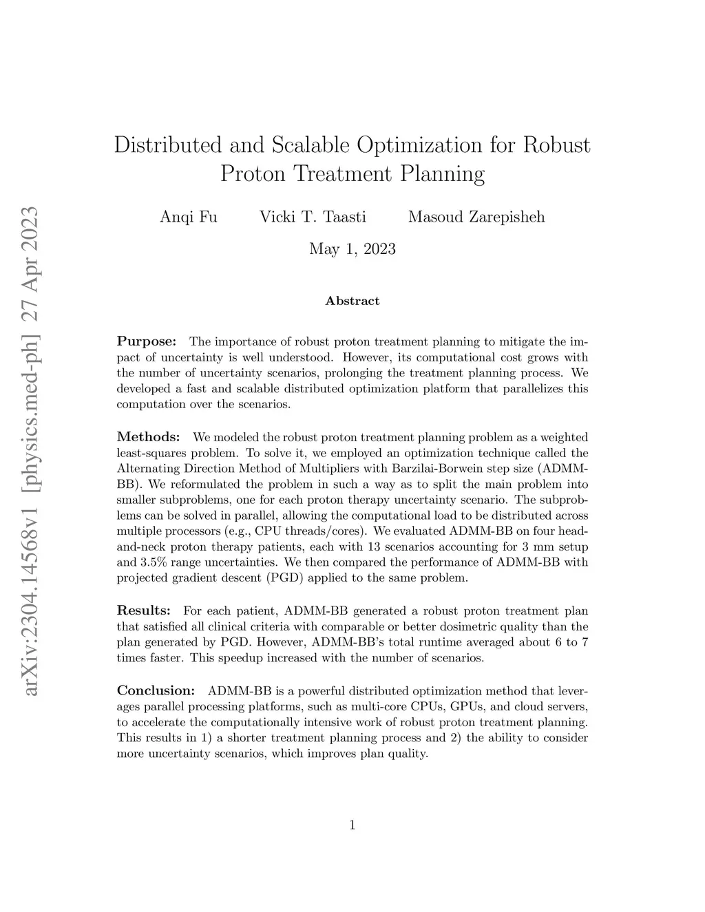 Distributed and Scalable Optimization for Robust Proton Treatment