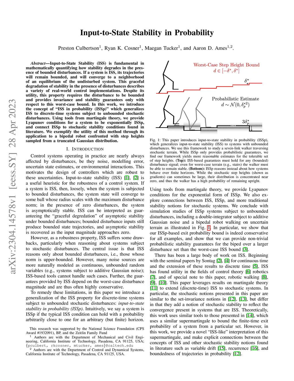 Input-to-State Stability (ISS) is fundamental in mathematically quantifying how stability degrades in the presence of bounded disturbances. If a system is ISS, its trajectories will remain bounded, and will converge to a neighborhood of an equilibrium of the undisturbed system. This graceful degradation of stability in the presence of disturbances describes a variety of real-world control implementations. Despite its utility, this property requires the disturbance to be bounded and provides invariance and stability guarantees only with respect to this worst-case bound. In this work, we introduce the concept of ``ISS in probability (ISSp)'' which generalizes ISS to discrete-time systems subject to unbounded stochastic disturbances. Using tools from martingale theory, we provide Lyapunov conditions for a system to be exponentially ISSp, and connect ISSp to stochastic stability conditions found in literature. We exemplify the utility of this method through its application to a bipedal robot confronted with step heights sampled from a truncated Gaussian distribution.