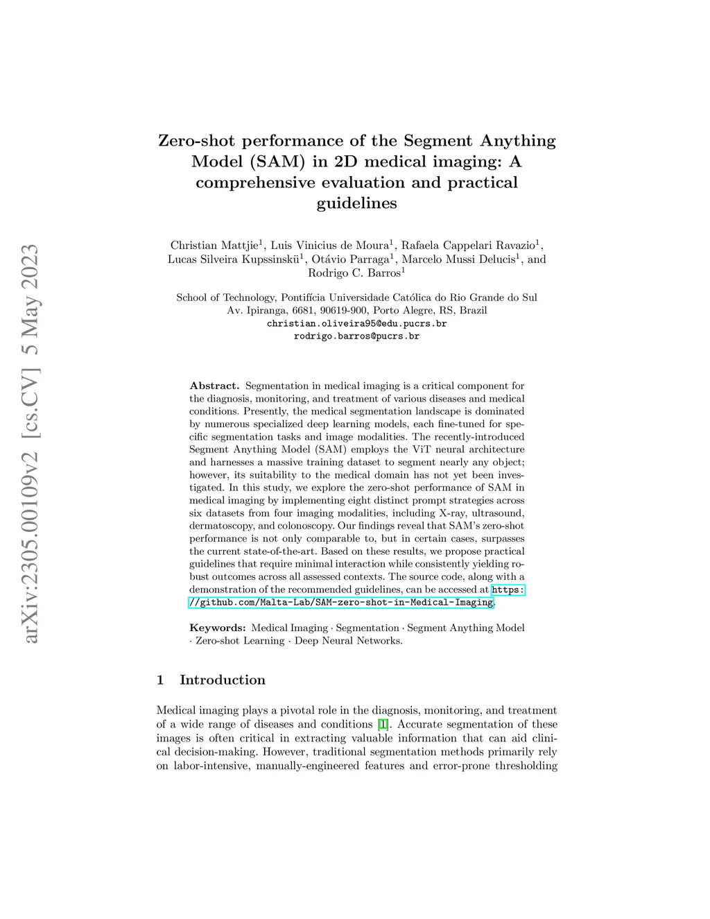 Segmentation in medical imaging plays a crucial role in diagnosing, monitoring, and treating various diseases and conditions. The current landscape of segmentation in the medical domain is dominated by numerous specialized deep learning models fine-tuned for each segmentation task and image modality. Recently, the Segment Anything Model (SAM), a new segmentation model, was introduced. SAM utilizes the ViT neural architecture and leverages a vast training dataset to segment almost any object. However, its generalizability to the medical domain remains unexplored. In this study, we assess the zero-shot capabilities of SAM 2D in medical imaging using eight different prompt strategies across six datasets from four imaging modalities: X-ray, ultrasound, dermatoscopy, and colonoscopy. Our results demonstrate that SAM's zero-shot performance is comparable and, in certain cases, superior to the current state-of-the-art. Based on our findings, we propose a practical guideline that requires minimal interaction and yields robust results in all evaluated contexts.
