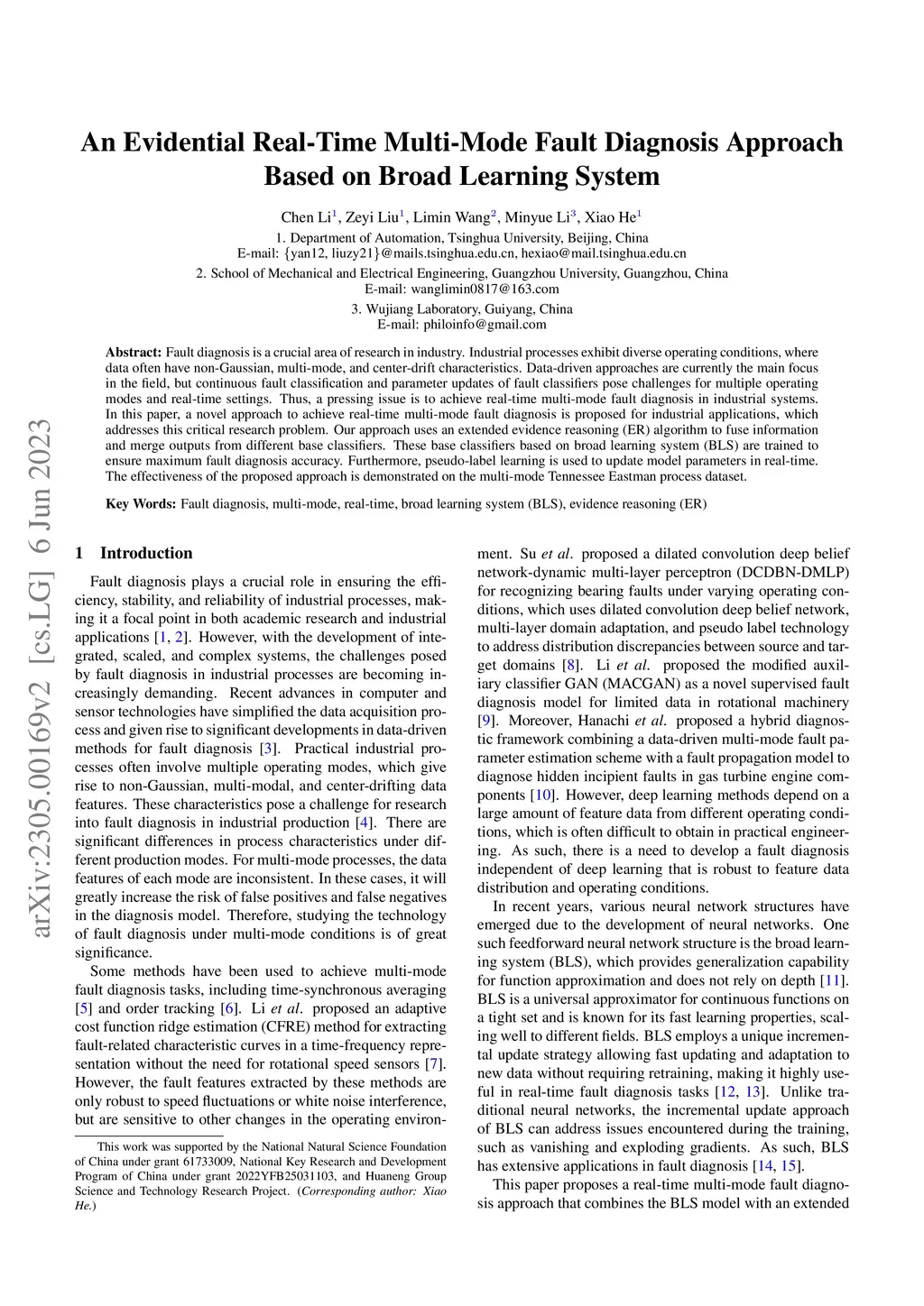 Fault diagnosis is a crucial area of research in industry. Industrial processes exhibit diverse operating conditions, where data often have non-Gaussian, multi-mode, and center-drift characteristics. Data-driven approaches are currently the main focus in the field, but continuous fault classification and parameter updates of fault classifiers pose challenges for multiple operating modes and real-time settings. Thus, a pressing issue is to achieve real-time multi-mode fault diagnosis in industrial systems. In this paper, a novel approach to achieve real-time multi-mode fault diagnosis is proposed for industrial applications, which addresses this critical research problem. Our approach uses an extended evidence reasoning (ER) algorithm to fuse information and merge outputs from different base classifiers. These base classifiers based on broad learning system (BLS) are trained to ensure maximum fault diagnosis accuracy. Furthermore, pseudo-label learning is used to update model parameters in real-time. The effectiveness of the proposed approach is demonstrated on the multi-mode Tennessee Eastman process dataset.