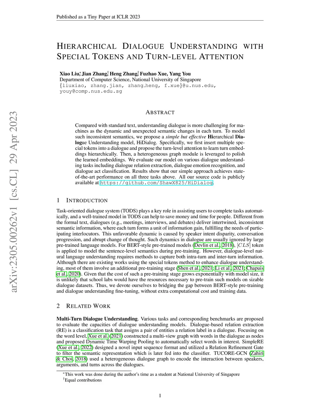 Hierarchical Dialogue Understanding with Special Tokens and Turn-level