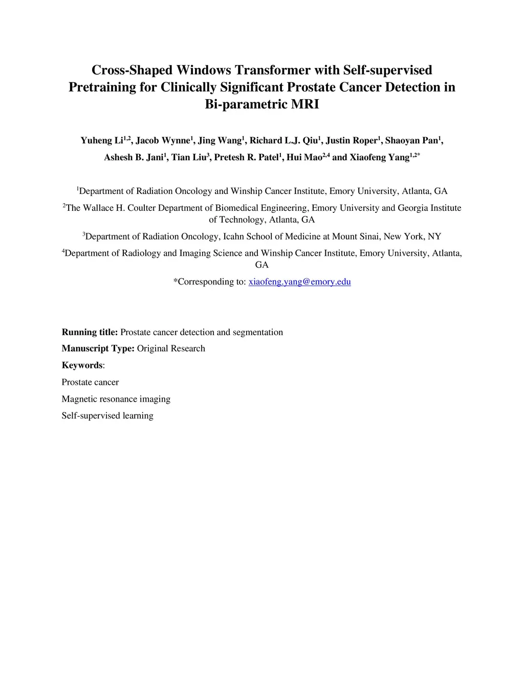 Cross-Shaped Windows Transformer with Self-supervised Pretraining for