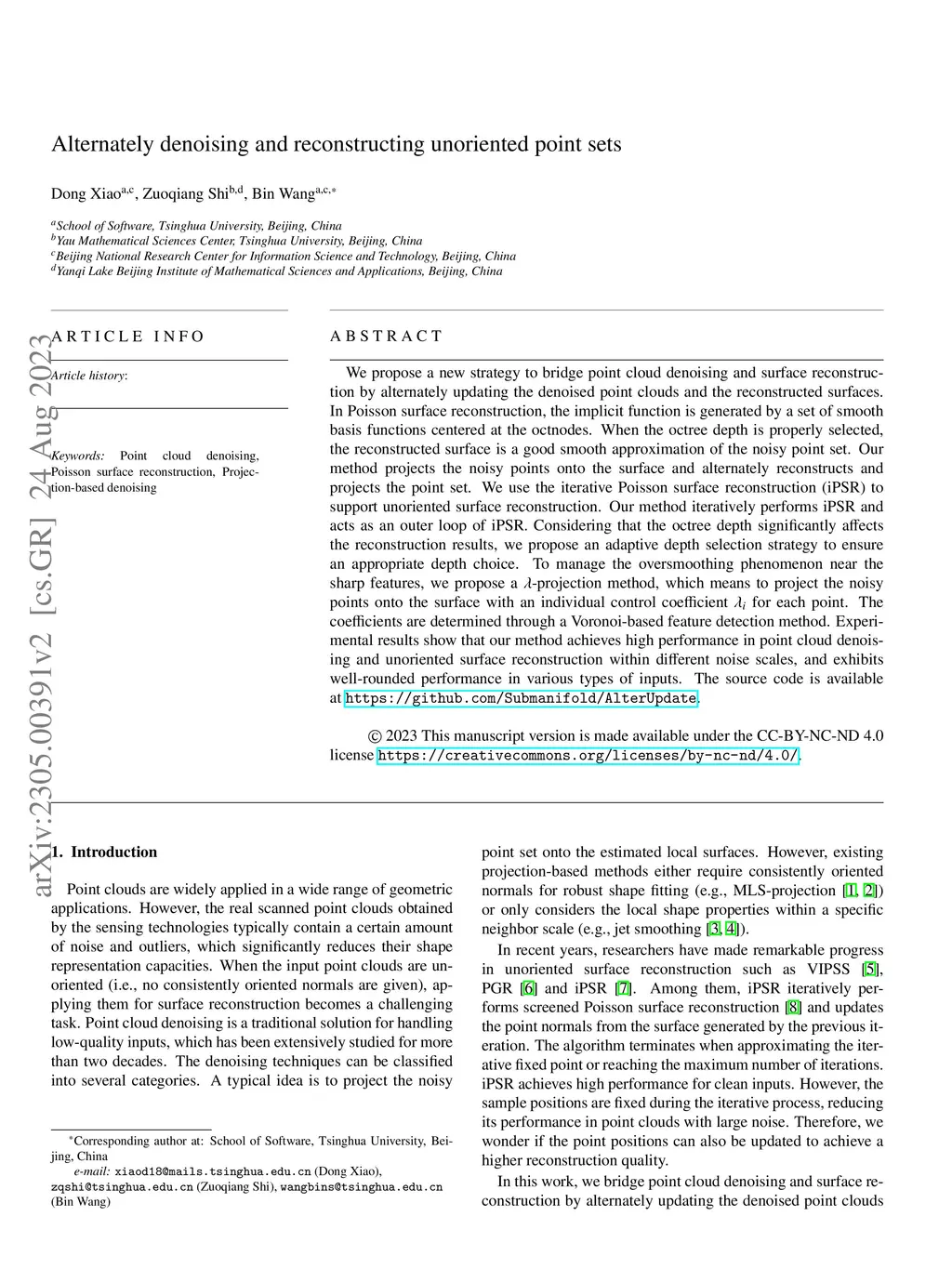 Alternately denoising and reconstructing unoriented point sets