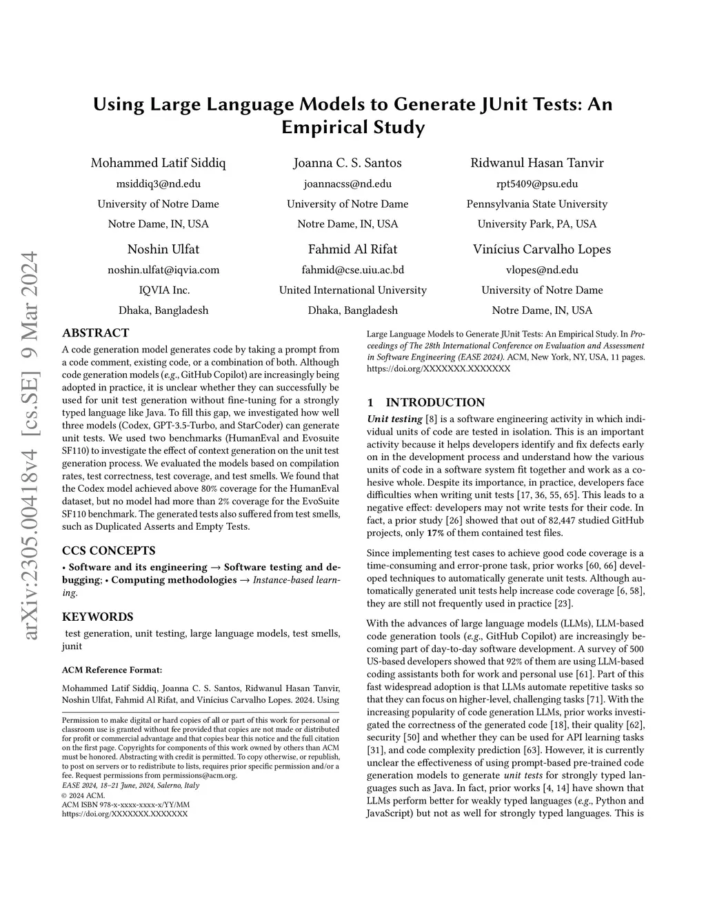 Using Large Language Models to Generate JUnit Tests: An Empirical Study
