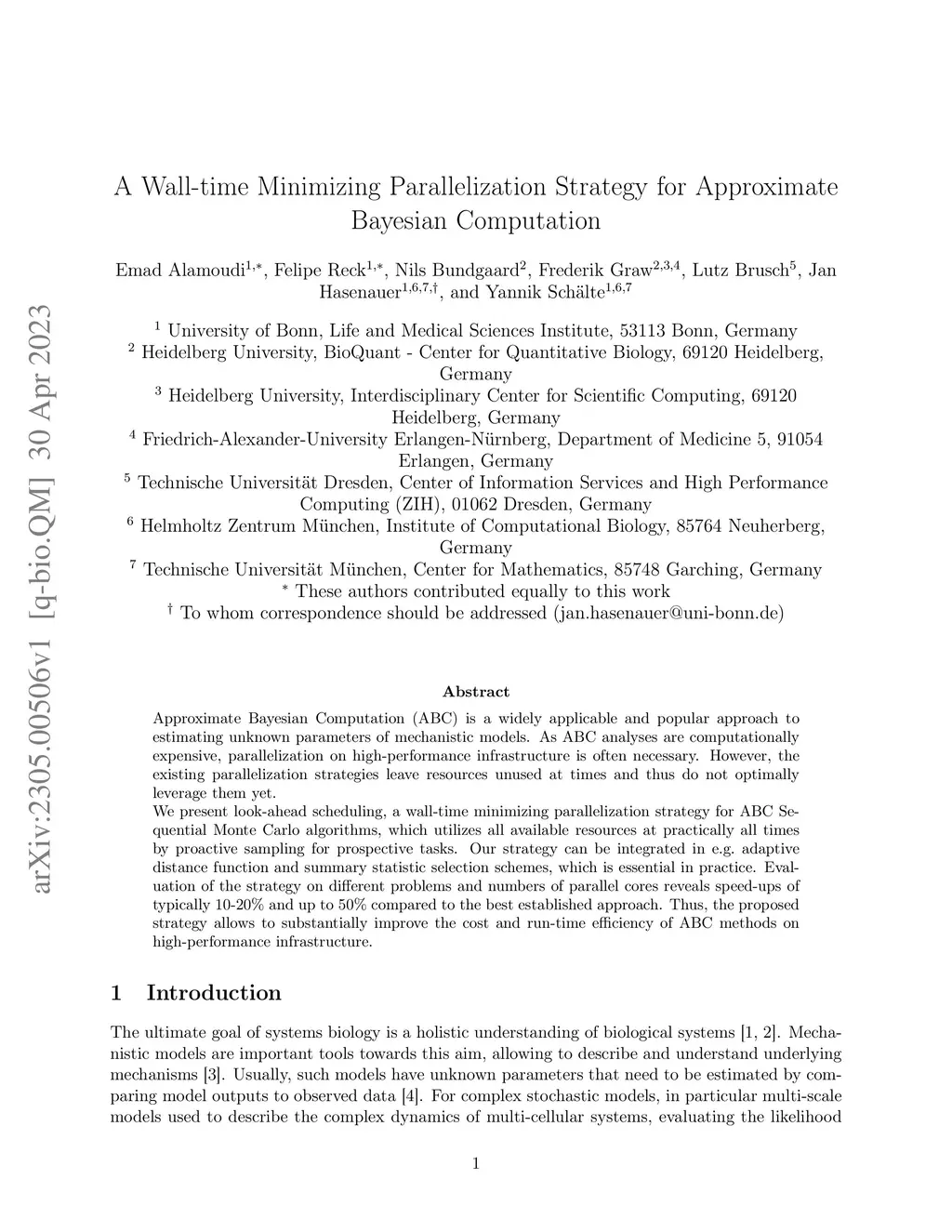Approximate Bayesian Computation (ABC) is a widely applicable and popular approach to estimating unknown parameters of mechanistic models. As ABC analyses are computationally expensive, parallelization on high-performance infrastructure is often necessary. However, the existing parallelization strategies leave resources unused at times and thus do not optimally leverage them yet. We present look-ahead scheduling, a wall-time minimizing parallelization strategy for ABC Sequential Monte Carlo algorithms, which utilizes all available resources at practically all times by proactive sampling for prospective tasks. Our strategy can be integrated in e.g. adaptive distance function and summary statistic selection schemes, which is essential in practice. Evaluation of the strategy on different problems and numbers of parallel cores reveals speed-ups of typically 10-20% and up to 50% compared to the best established approach. Thus, the proposed strategy allows to substantially improve the cost and run-time efficiency of ABC methods on high-performance infrastructure.
