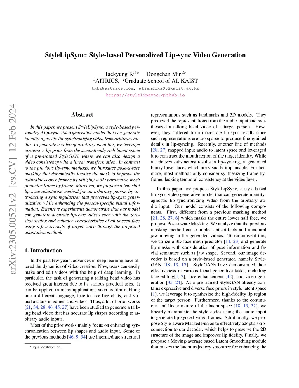StyleLipSync: Style-based Personalized Lip-sync Video Generation