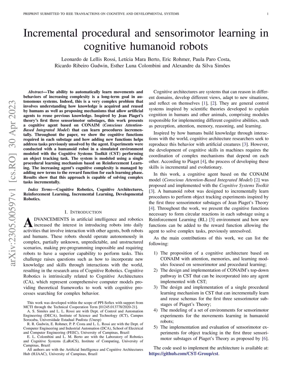 Incremental procedural and sensorimotor learning in cognitive humanoid