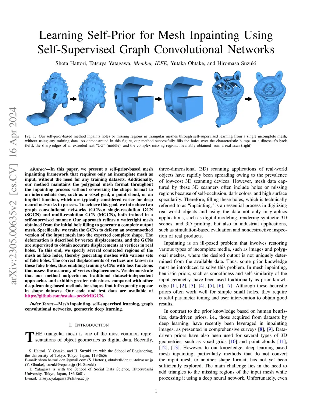 Learning Self-Prior for Mesh Inpainting Using Self-Supervised Graph