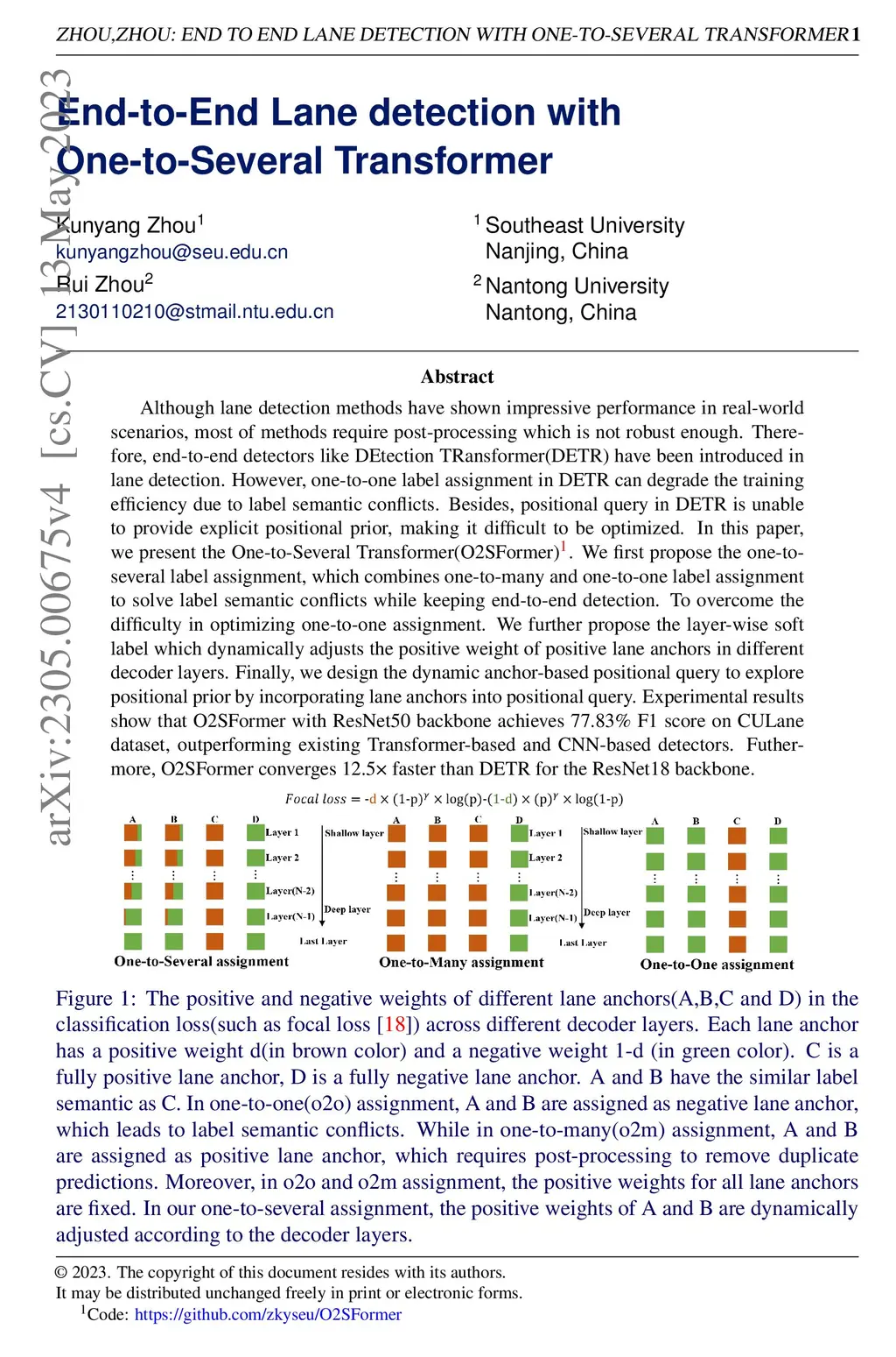 Although lane detection methods have shown impressive performance in real-world scenarios, most of methods require post-processing which is not robust enough. Therefore, end-to-end detectors like DEtection TRansformer(DETR) have been introduced in lane detection.However, one-to-one label assignment in DETR can degrade the training efficiency due to label semantic conflicts. Besides, positional query in DETR is unable to provide explicit positional prior, making it difficult to be optimized. In this paper, we present the One-to-Several Transformer(O2SFormer). We first propose the one-to-several label assignment, which combines one-to-many and one-to-one label assignment to solve label semantic conflicts while keeping end-to-end detection. To overcome the difficulty in optimizing one-to-one assignment. We further propose the layer-wise soft label which dynamically adjusts the positive weight of positive lane anchors in different decoder layers. Finally, we design the dynamic anchor-based positional query to explore positional prior by incorporating lane anchors into positional query. Experimental results show that O2SFormer with ResNet50 backbone achieves 77.83% F1 score on CULane dataset, outperforming existing Transformer-based and CNN-based detectors. Futhermore, O2SFormer converges 12.5x faster than DETR for the ResNet18 backbone.