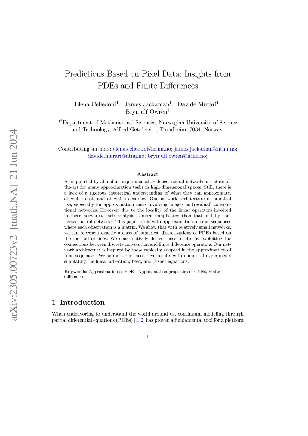 Predictions Based on Pixel Data: Insights from PDEs and Finite