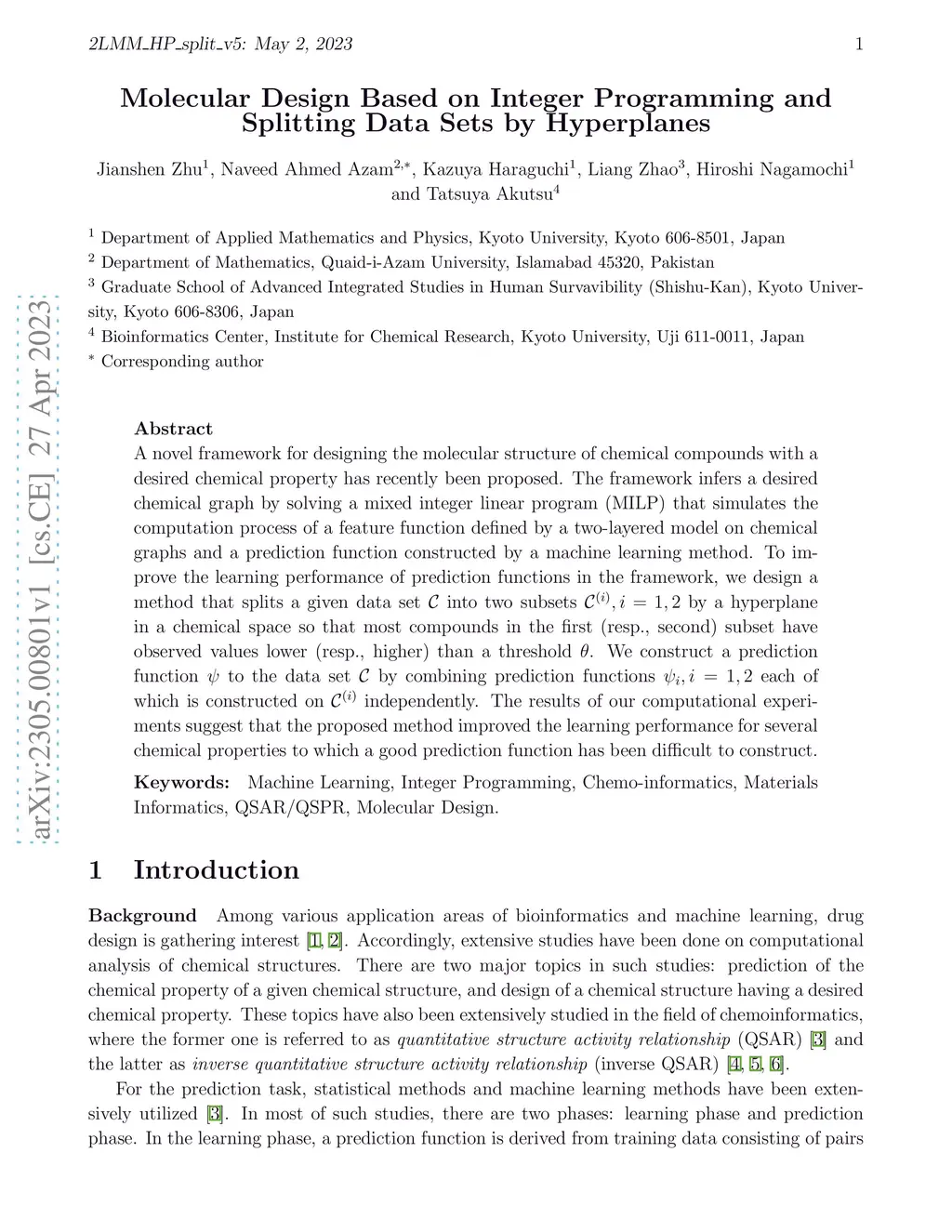 Molecular Design Based on Integer Programming and Splitting Data Sets by
