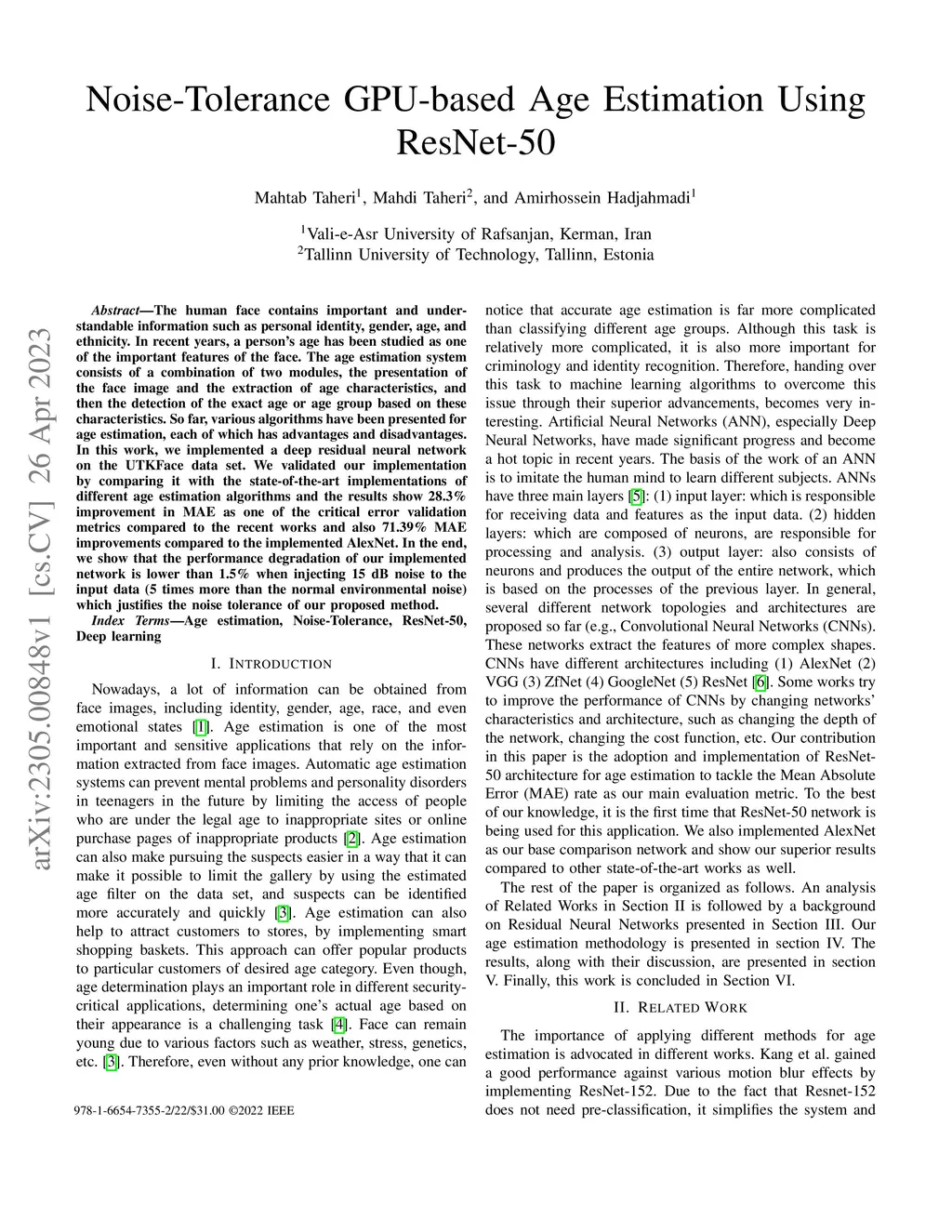 Noise-Tolerance GPU-based Age Estimation Using ResNet-50