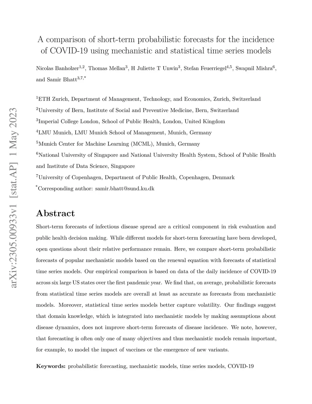 COVID-19 using mechanistic and statistical time series models