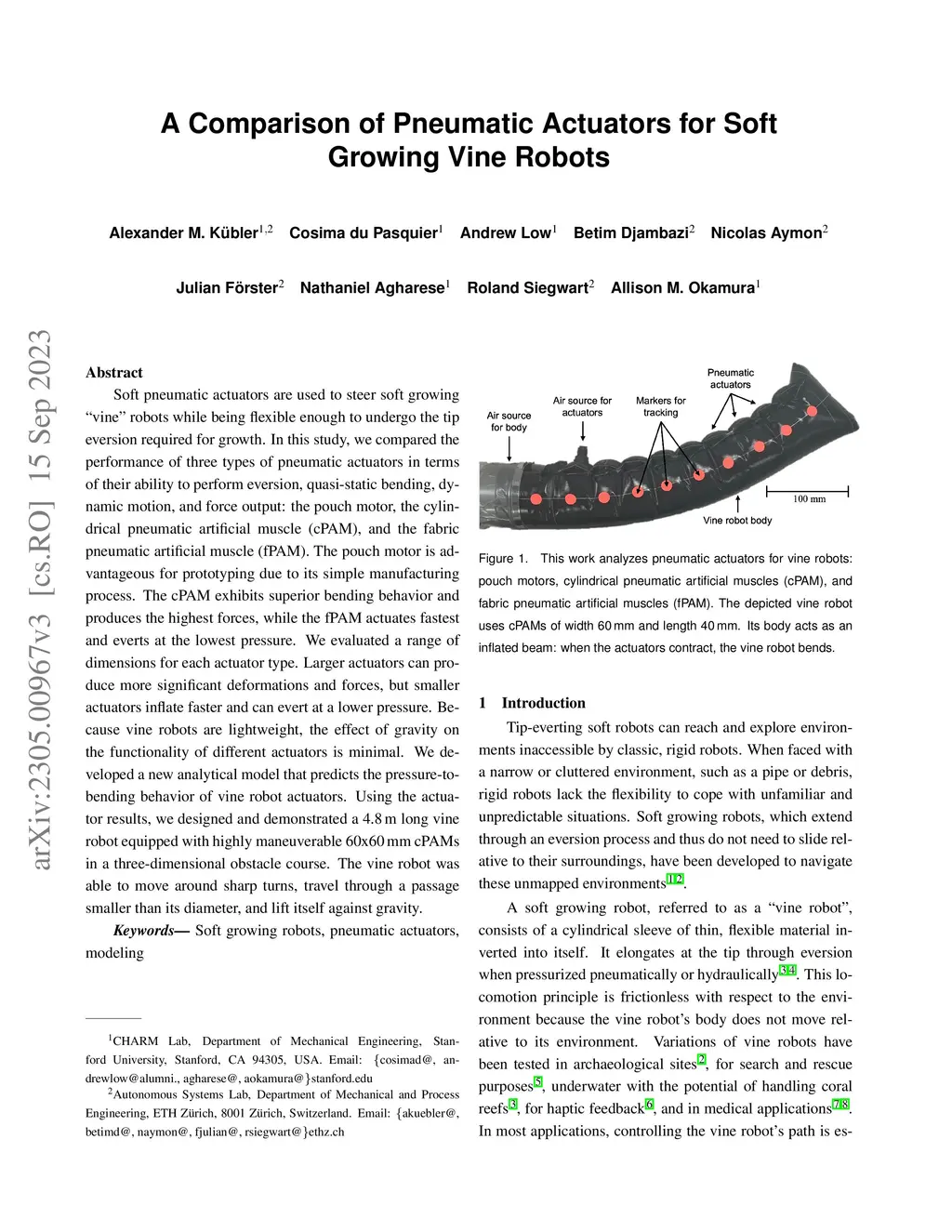 A Comparison of Pneumatic Actuators for Soft Growing Vine Robots