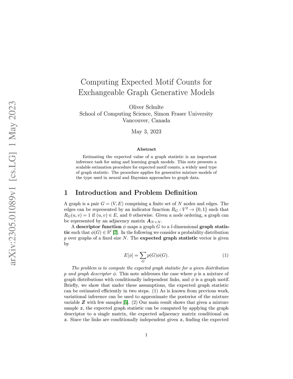 Estimating the expected value of a graph statistic is an important inference task for using and learning graph models. This note presents a scalable estimation procedure for expected motif counts, a widely used type of graph statistic. The procedure applies for generative mixture models of the type used in neural and Bayesian approaches to graph data.