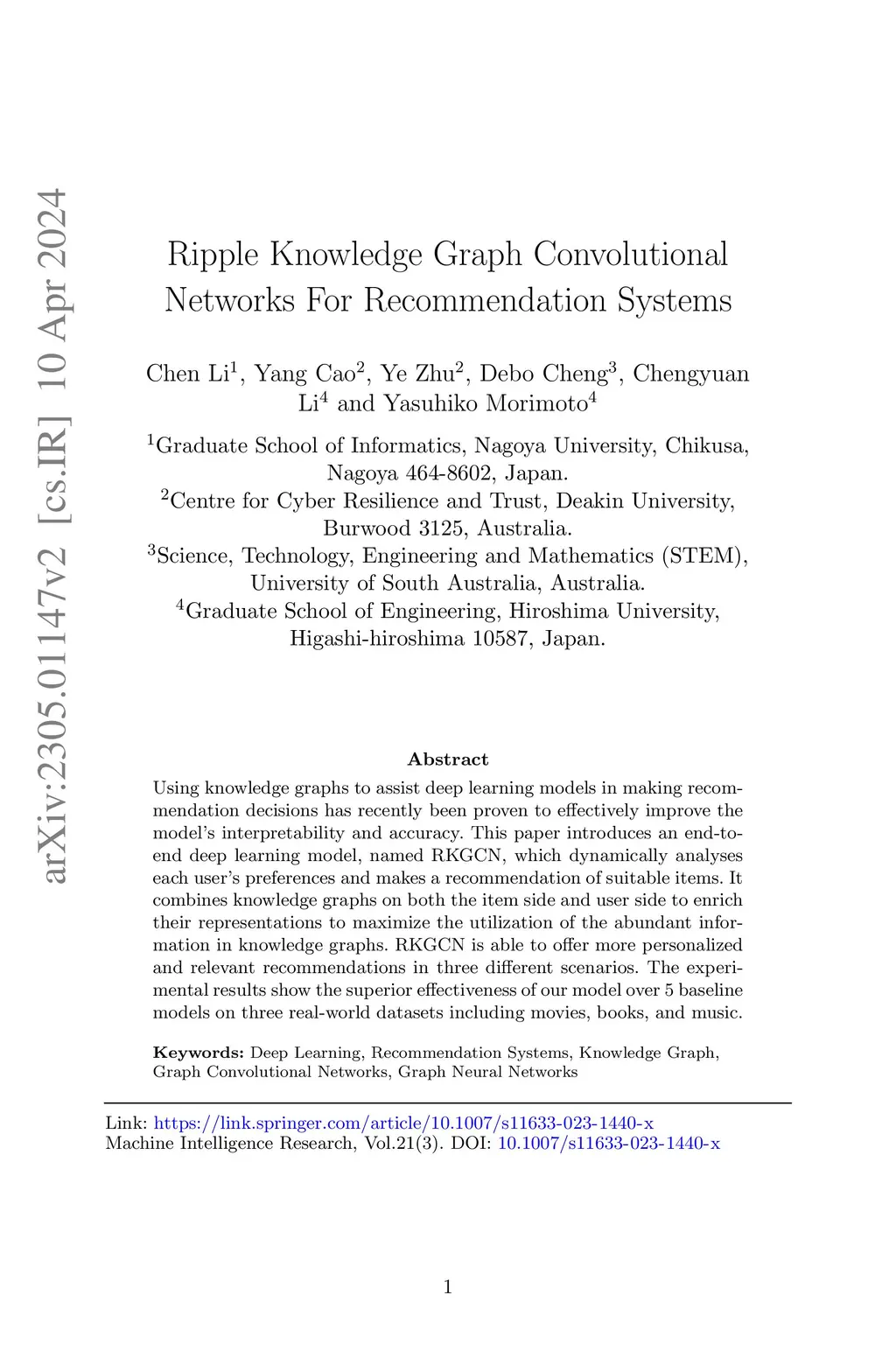 Ripple Knowledge Graph Convolutional Networks For Recommendation Systems