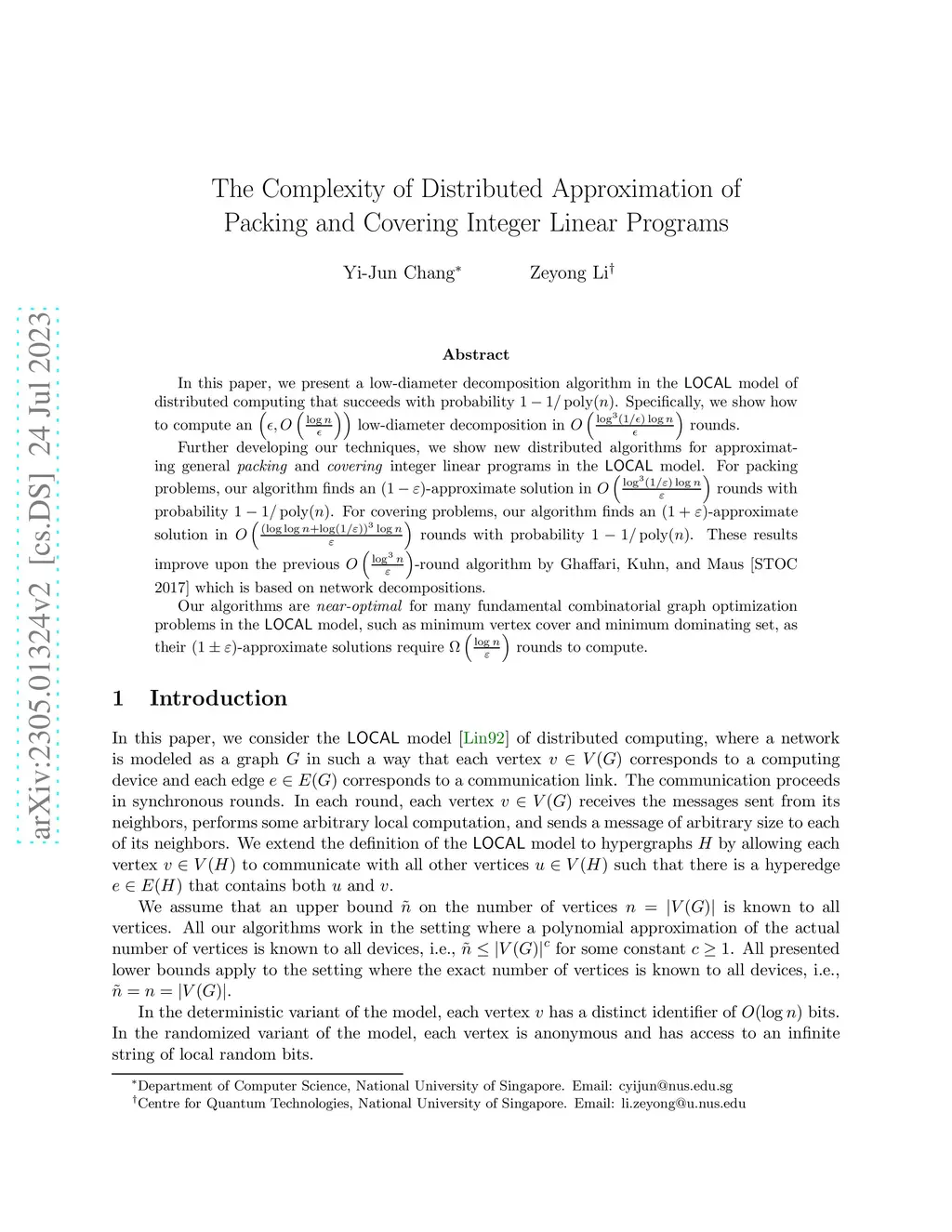 In this paper, we present a low-diameter decomposition algorithm in the LOCAL model of distributed computing that succeeds with probability . Specifically, we show how to compute an low-diameter decomposition in round Further developing our techniques, we show new distributed algorithms for approximating general packing and covering integer linear programs in the LOCAL model. For packing problems, our algorithm finds an -approximate solution in rounds with probability . For covering problems, our algorithm finds an -approximate solution in rounds with probability . These results improve upon the previous -round algorithm by Ghaffari, Kuhn, and Maus [STOC 2017] which is based on network decompositions. Our algorithms are near-optimal for many fundamental combinatorial graph optimization problems in the LOCAL model, such as minimum vertex cover and minimum dominating set, as their -approximate solutions require rounds to compute.