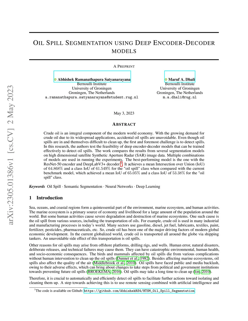 Oil Spill Segmentation using Deep Encoder-Decoder models