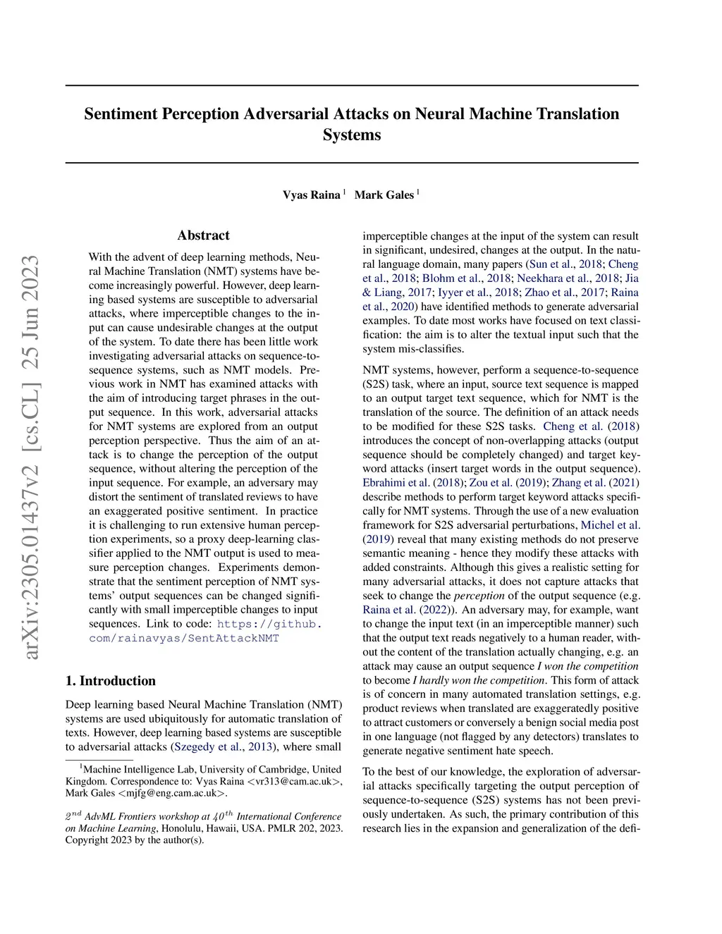 Sentiment Perception Adversarial Attacks on Neural Machine Translation