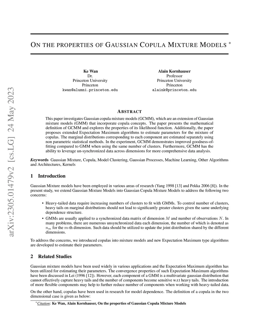 This paper investigates Gaussian copula mixture models (GCMM), which are an extension of Gaussian mixture models (GMM) that incorporate copula concepts. The paper presents the mathematical definition of GCMM and explores the properties of its likelihood function. Additionally, the paper proposes extended Expectation Maximum algorithms to estimate parameters for the mixture of copulas. The marginal distributions corresponding to each component are estimated separately using nonparametric statistical methods. In the experiment, GCMM demonstrates improved goodness-of-fitting compared to GMM when using the same number of clusters. Furthermore, GCMM has the ability to leverage un-synchronized data across dimensions for more comprehensive data analysis.