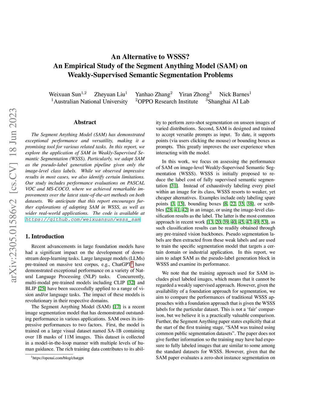 (SAM) on Weakly-Supervised Semantic Segmentation Problems
