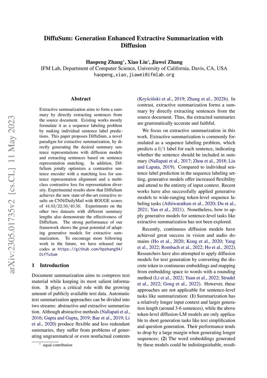 DiffuSum: Generation Enhanced Extractive Summarization with Diffusion