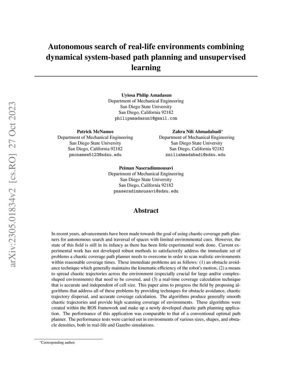 Autonomous search of real-life environments combining dynamical